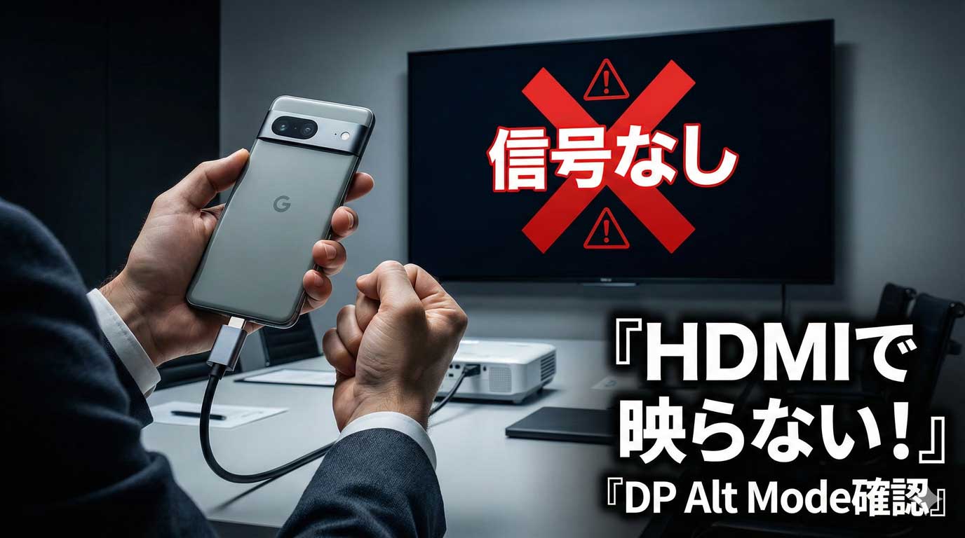 | 変換側がDP Alt Mode前提じゃない/品質が弱い | 映ったり消えたり、解像度が合わない | 会議開始直後にブラックアウト、4Kだけ不安定、など |