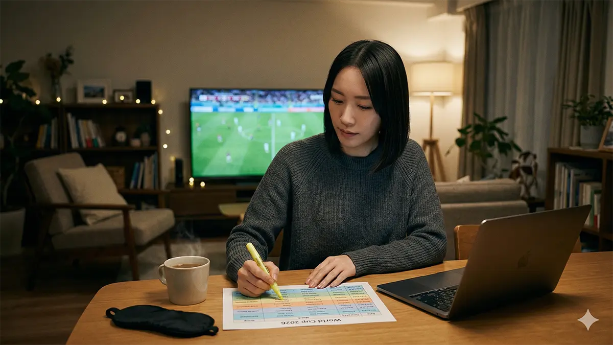 その経験から、本記事では全104試合を日本時間(JST)へ完全変換。さらに、翌日の仕事へのダメージを可視化する「深夜・早朝・ゴールデン」の3色フィルタを実装しました。このページをブックマークし、大会終了まであなたの「参謀」として使い倒してください。