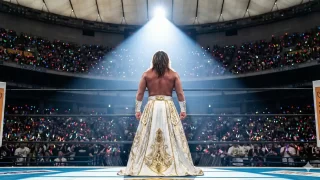 雪に覆われたイタリア・ドロミテ山脈の壮大な夜景を背景に、コルティナ・ダンペッツォの街並みが暖色の光で輝いている。前景には、2026年冬季オリンピック開会式の会場となる華やかなスタジアムがあり、五輪マークの巨大なオブジェがライトアップされ、盛大な花火が夜空を彩っている。熱気と幻想的な雰囲気が融合した、期待感に満ちたビジュアル。画像の解像度は横幅1200px×高さ675pxにする事。