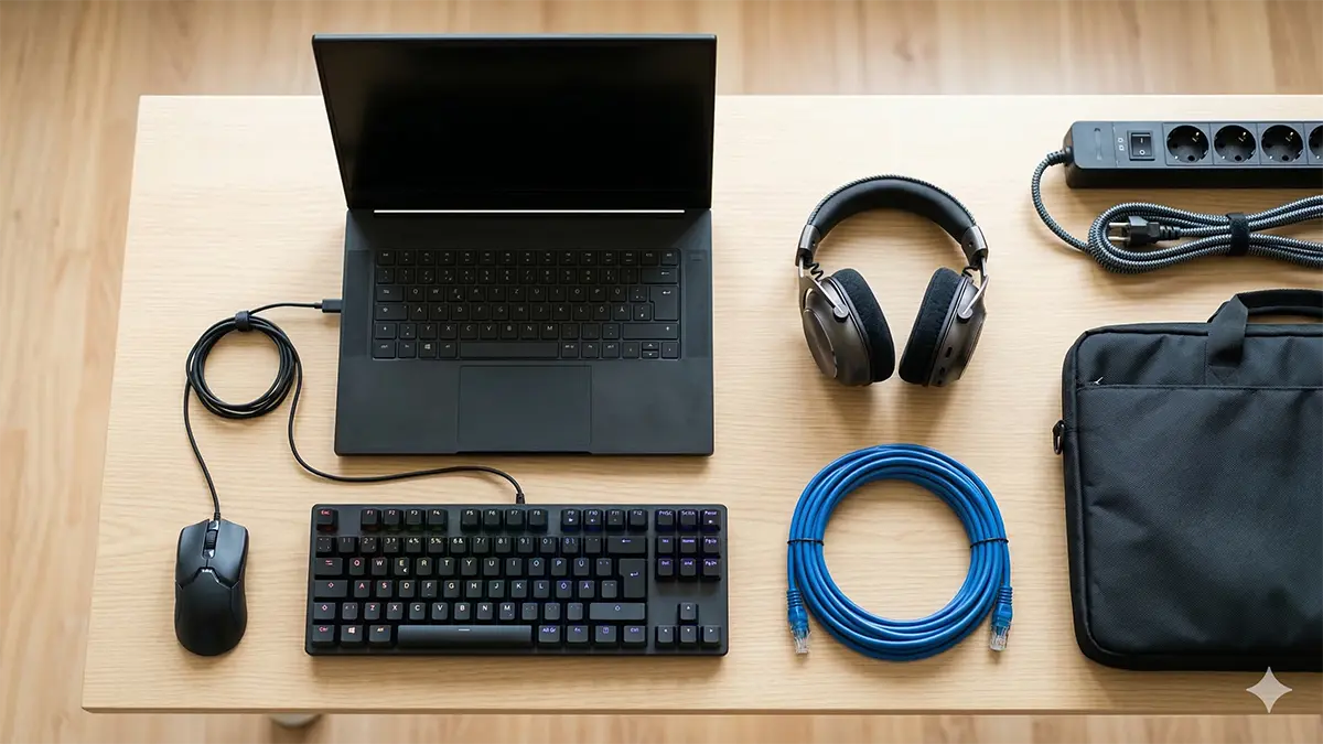 Beispielszenario (typisch): „Timo“ (Erstbesuch, Laptop-Setup) hat Maus, Headset, Ladekabel – aber kein LAN-Kabel. Ergebnis: Er startet nicht, weil er vor Ort keinen passenden Ersatz bekommt. Aus „kurz aufbauen“ wird „lange improvisieren“.